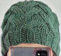 Plongez dans l'univers douillet et authentique de MailleMum avec notre bonnet vert forêt tricoté main.
